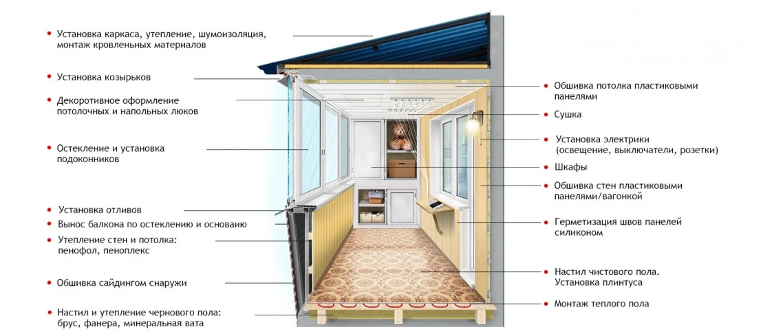 Отделка и ремонт балкона или лоджии — всегда хороший и правильный шаг в сторону комфорта и функциональности. Если вы решили расширить площади своего жилища и очистить балкон от старых вещей или преобразить его с помощью новых технологий, то компания «Окошкофф» предлагает свои услуги: